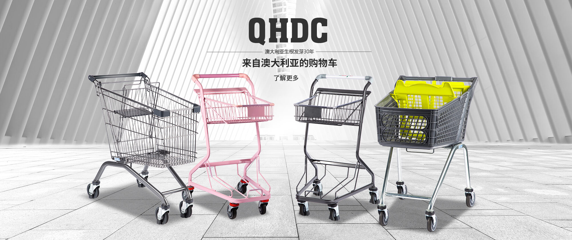 我們公司在澳大利亞生根發(fā)芽30年,現(xiàn)如今在澳洲購物車市場(chǎng)占有率達(dá)到90%以上。QHDC公司生產(chǎn)的購物車,在澳洲就是為高端需求界定了標(biāo)準(zhǔn)。
